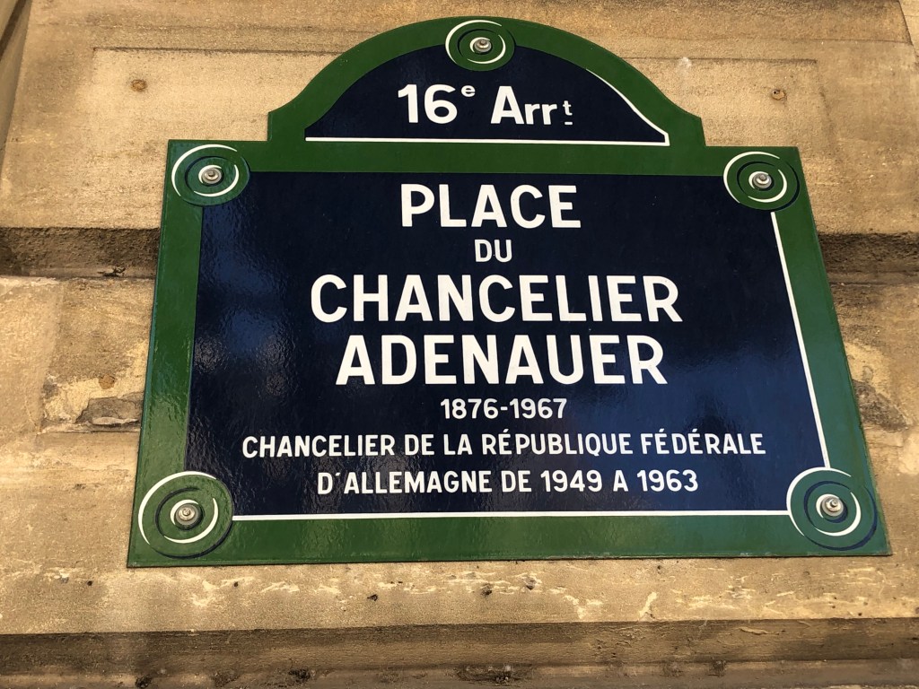 Cette place doit son nom à Konrad Adenauer qui fut chancelier de la République fédérale d’Allemagne de 1949 à 1963