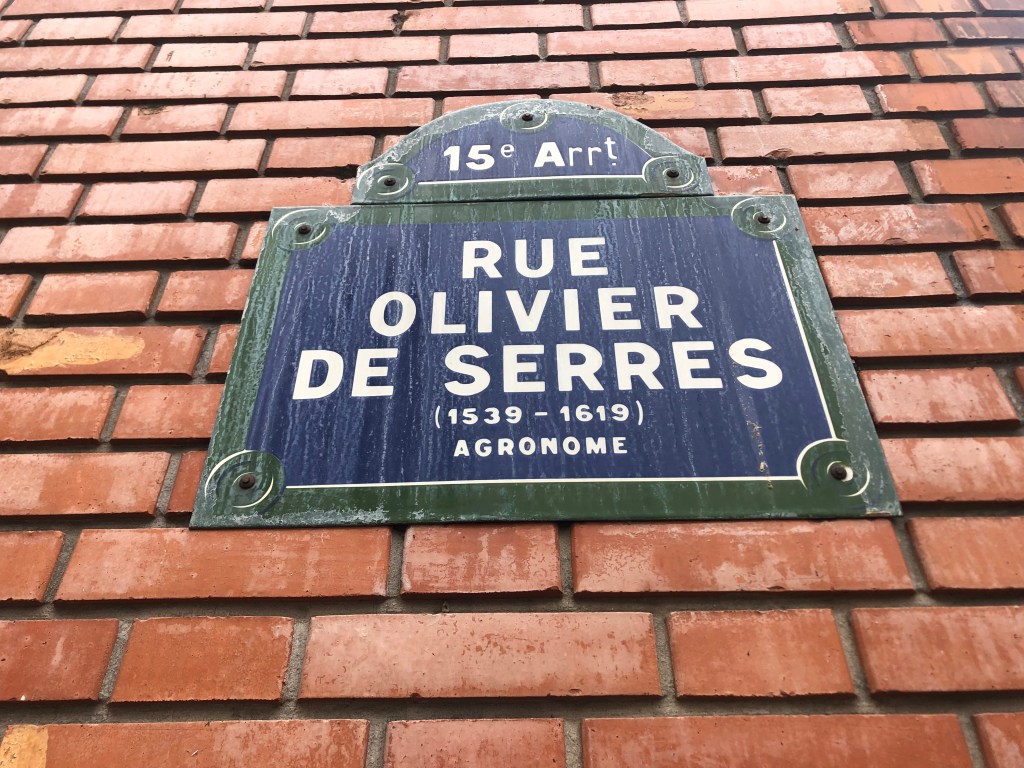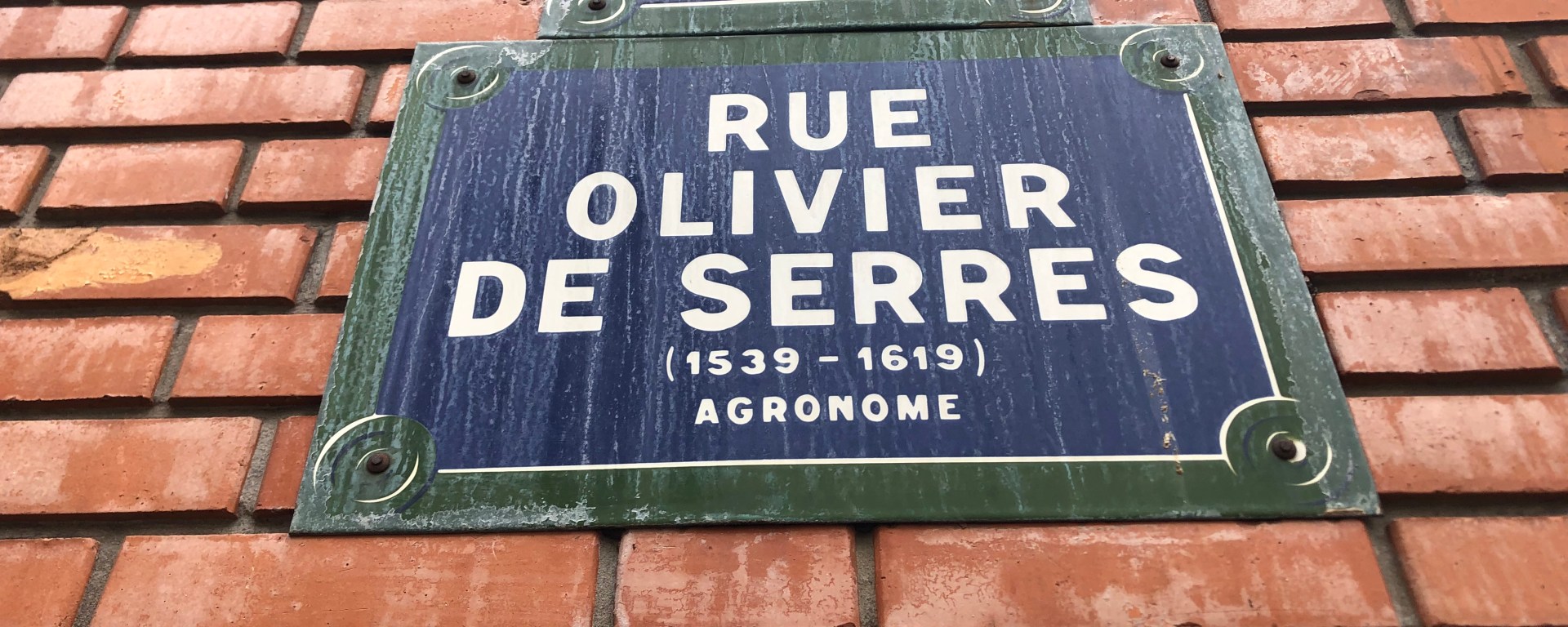 La rue porte le nom d’Olivier de Serres, agronome français, connu plus particulièrement pour son traité Théâtre d’Agriculture et mesnage des champs publié en 1600