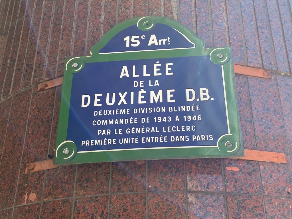 Cette allée prend le nom de la division blindée commandée par la général Leclerc durant la seconde guerre mondiale. Cette dénomination est liée à la gare Montparnasse où le général Leclerc a établi son centre de commandement à la libération de Paris et où fut signée la reddition de Paris par le général von Choltitz.