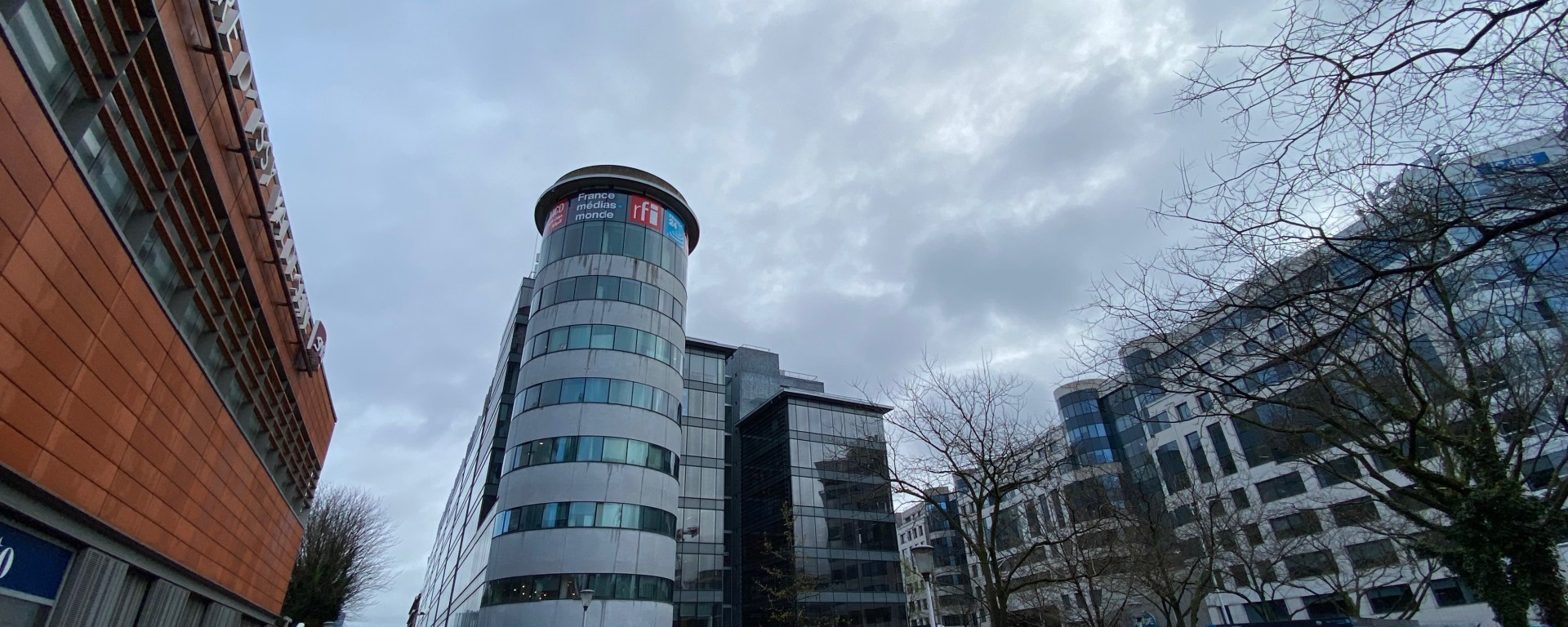 L’immeuble du 80 rue Camille Desmoulins est immédiatement identifiable par sa tour arrondie mais surtout par son affichage aux couleurs de France Medias Monde. L’ensemble du bâtiment – dénommé Aphelion et œuvre de l’architecte Jean-Jacques Ory – se décompose en deux partie : une première située à l’adresse précitée et une seconde située au 62 rue Camille Desmoulins et datant de 2005. Le bâtiment était tout d’abord dévolu principalement à la société Hewlett-Packard qui affichait d’ailleurs son propre logo sur la façade de l’immeuble. En mars 2011, la société quitte l’adresse et un nouveau chapitre s’ouvre ainsi.